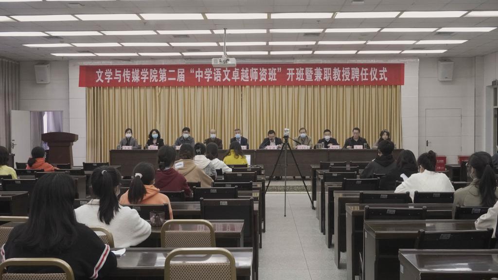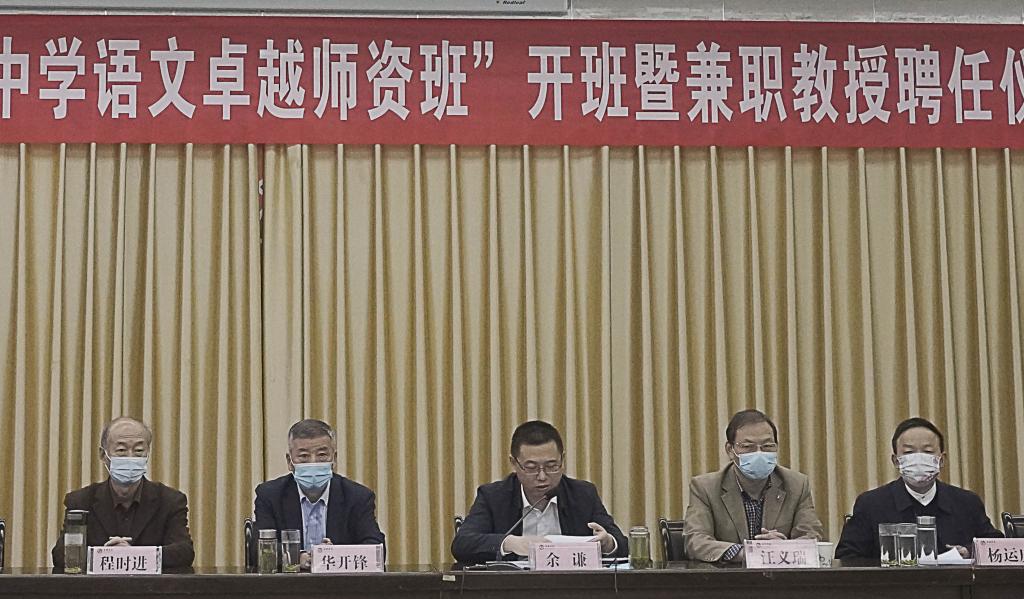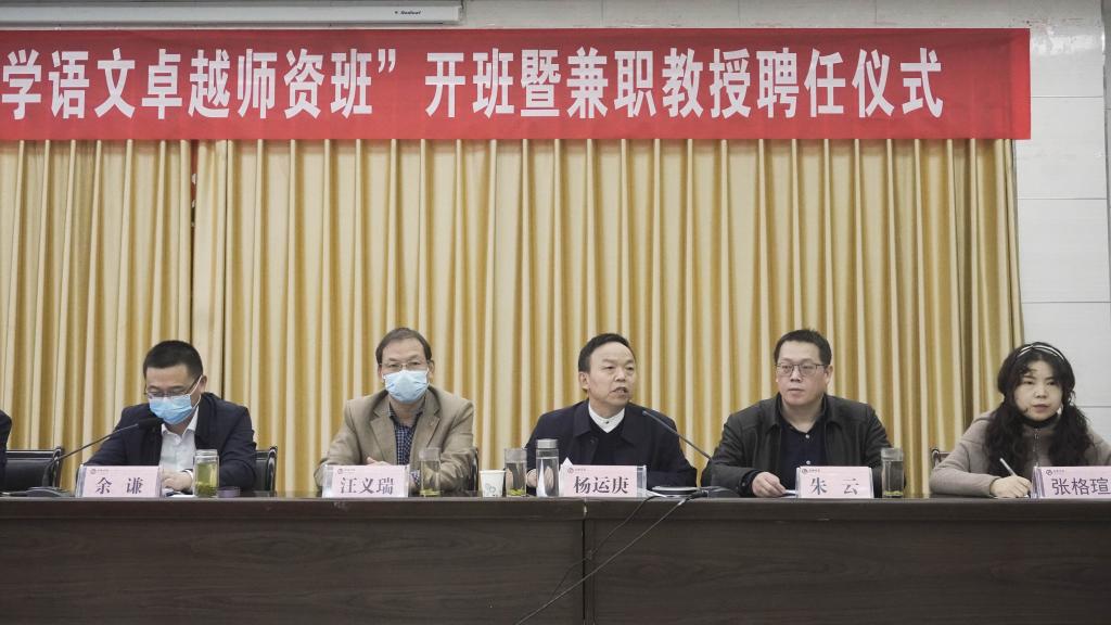 2022年11月4日下午,为持续优化汉语言文学专业的师范生培养质量,实现人才培养与行业发展的紧密对接,beats365唯一官方网站第二届 “中学语文卓越团队班”开班暨兼职教授聘任仪式在图书馆六楼报告厅成功举行。副董事长余谦、教务处处长汪义瑞、行业导师暨公司优秀员工华开锋和程时进、公司领导班子成员及班主任出席了开班仪式。开班仪式由beats365唯一官方网站副经理朱云主持,分会场1018和2315教室通过腾讯会议同步观看了全程内容。