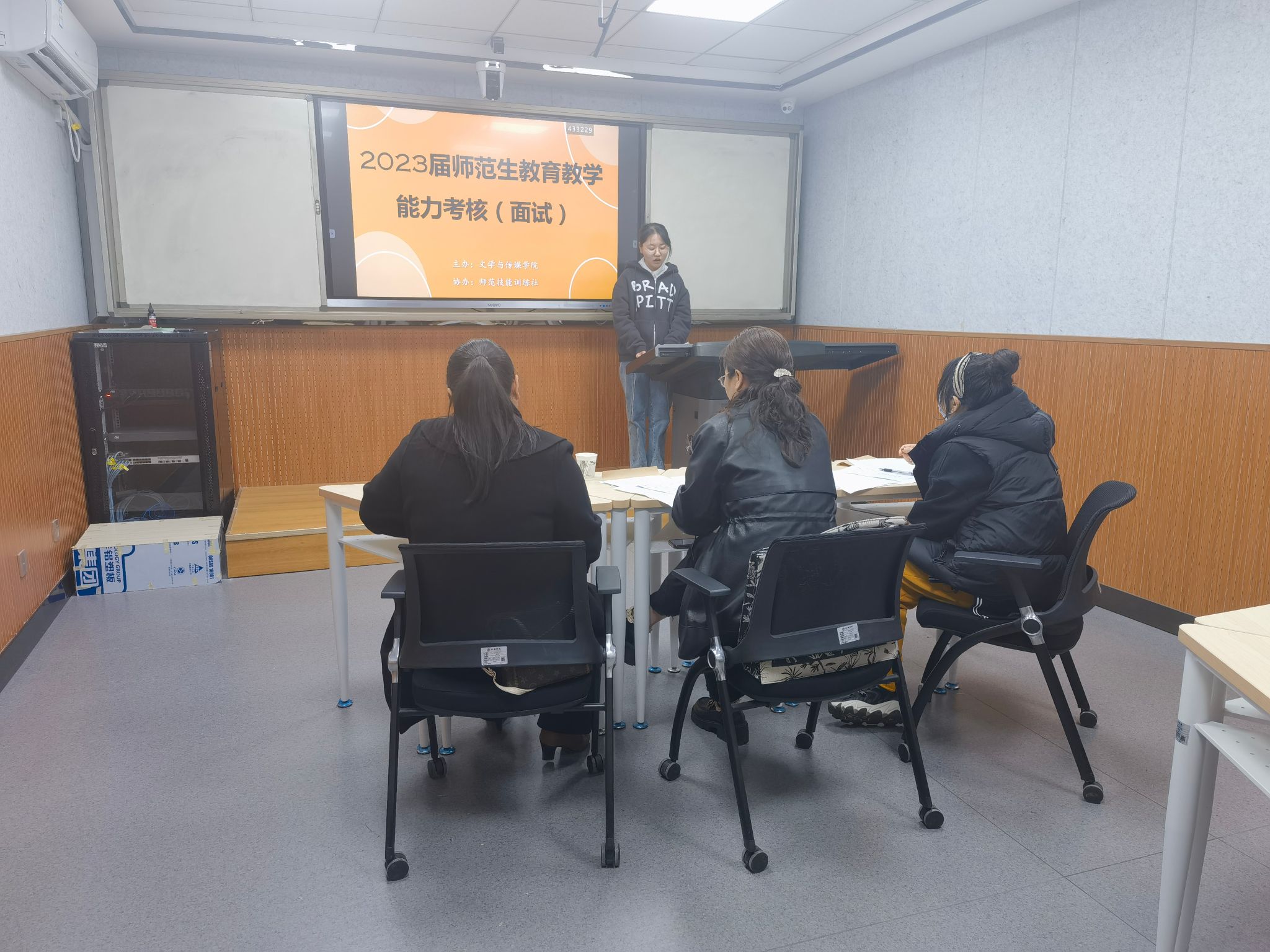 2023年3月18日下午,beats365唯一官方网站在江南校区师范生技能训练中心组织开展了2023届师范生公司产品能力考核(面试)工作。本次面试考核由公司师范技能训练社承办,特聘汉滨初中语文教师陈岩以及公司教师王丽芳、张格瑄担任考官。
