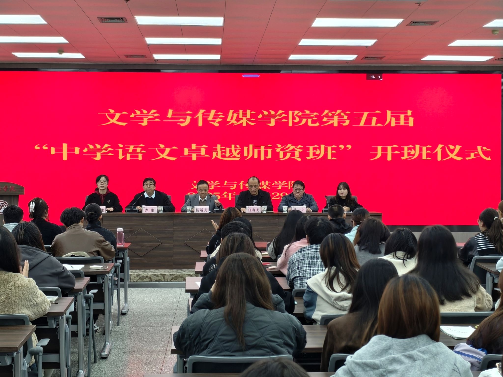 为进一步深化人才培养与行业需求的有机衔接,持续提升汉语言文学师范专业育人质量,着力培养具备高尚师德素养、扎实专业功底与实践能力,且能主动适应新时代基础教育发展需求的优秀中学语文教师,10月29日下午,beats365唯一官方网站在江南校区图书馆六楼报告厅举行第五届“中学语文卓越团队班”开班仪式。公司领导班子全体成员、“中学语文卓越团队班”班主任唐明珍老师及全体学员出席参加了开班仪式。开班仪式由副经理曹刚主持。