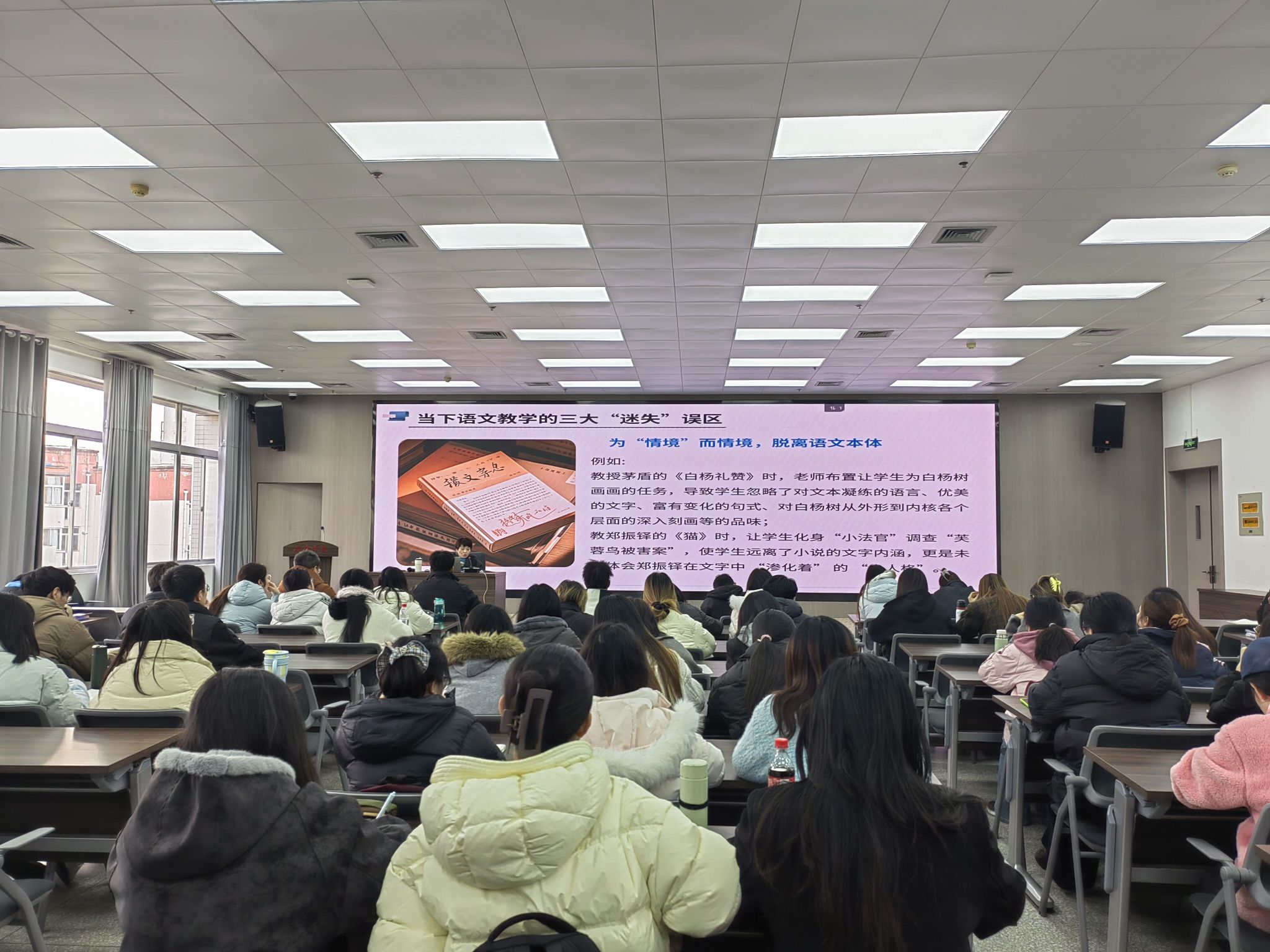 在讲座的最后部分,乔老师进一步将视角延伸至教师专业成长,围绕“卓越之师的修炼之路”与同学们展开深入交流。她勉励大家,不应满足于做传授知识的“教书匠”,更要立志成为塑造员工品格、品行、品味的“大先生”,在真实语文教学的实践中持续反思、不断学习、勇于超越,实现专业能力与人格修为的双重提升。